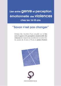 Cette enquête, établie par le Centre de Recherche d’ULB, RCN J&D et Le Monde selon les femmes, porte sur le lien entre le genre et la perception émotionnelle des violences de masse et du harcèlement scolaire. Elle a été menée auprès de 320 élèves âgés de 16 à 18 ans dans l’enseignement